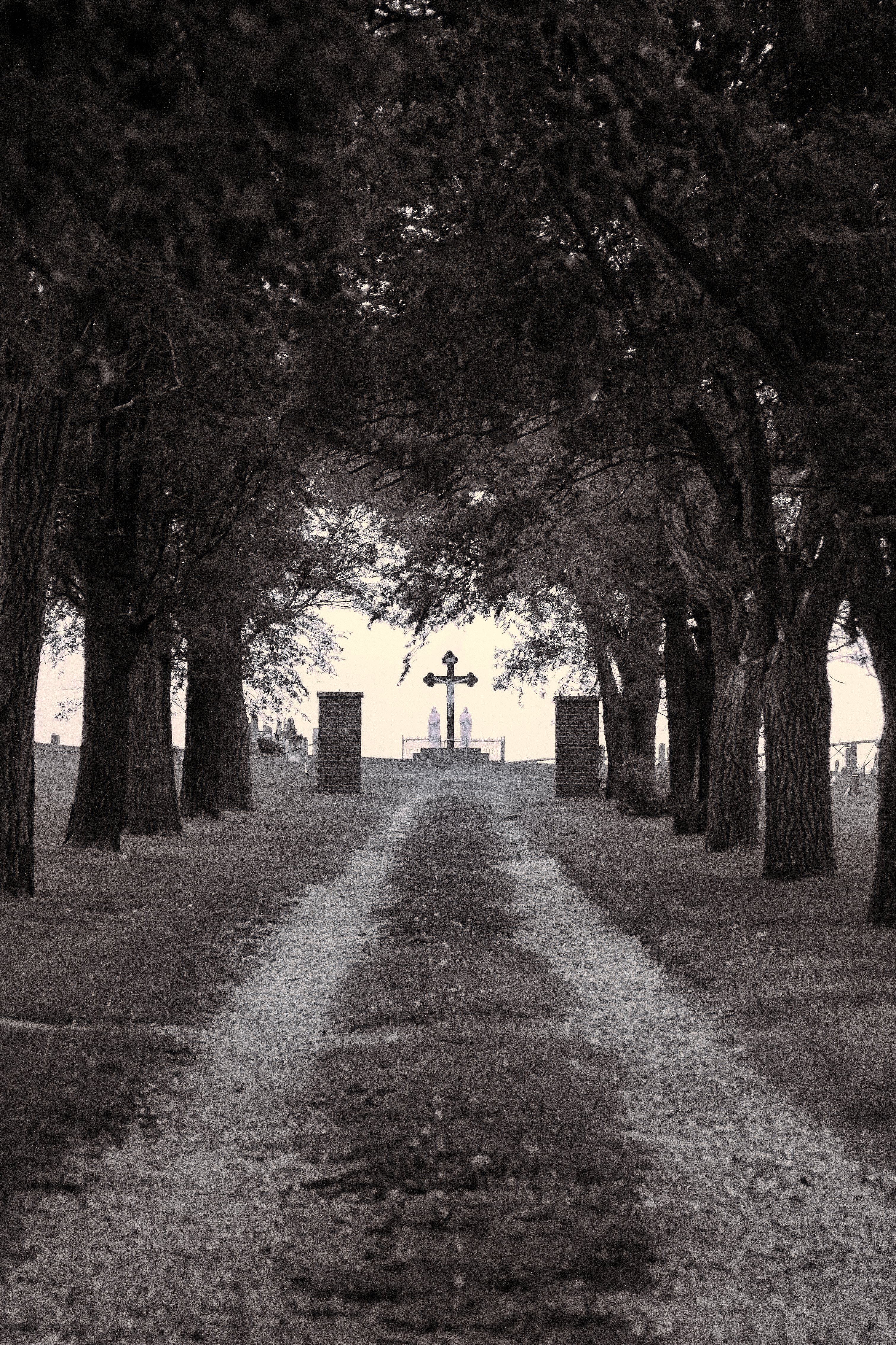 5. Journey Home Mary and I spent a lot of time back in our home state of Kansas this year. Mary’s beloved mother passed away in January; so, we had a funeral trip and, later, a trip for the estate sale. Fortunately, I was able to get in a bit of photoremedy during both visits. This photograph, from the Catholic cemetery in tiny St. Joseph, helped put things in perspective for me. God is the Alpha and the Omega. When we are born, we come from our Creator. And, when we pass, we pray that the road will lead us back.Journey Home