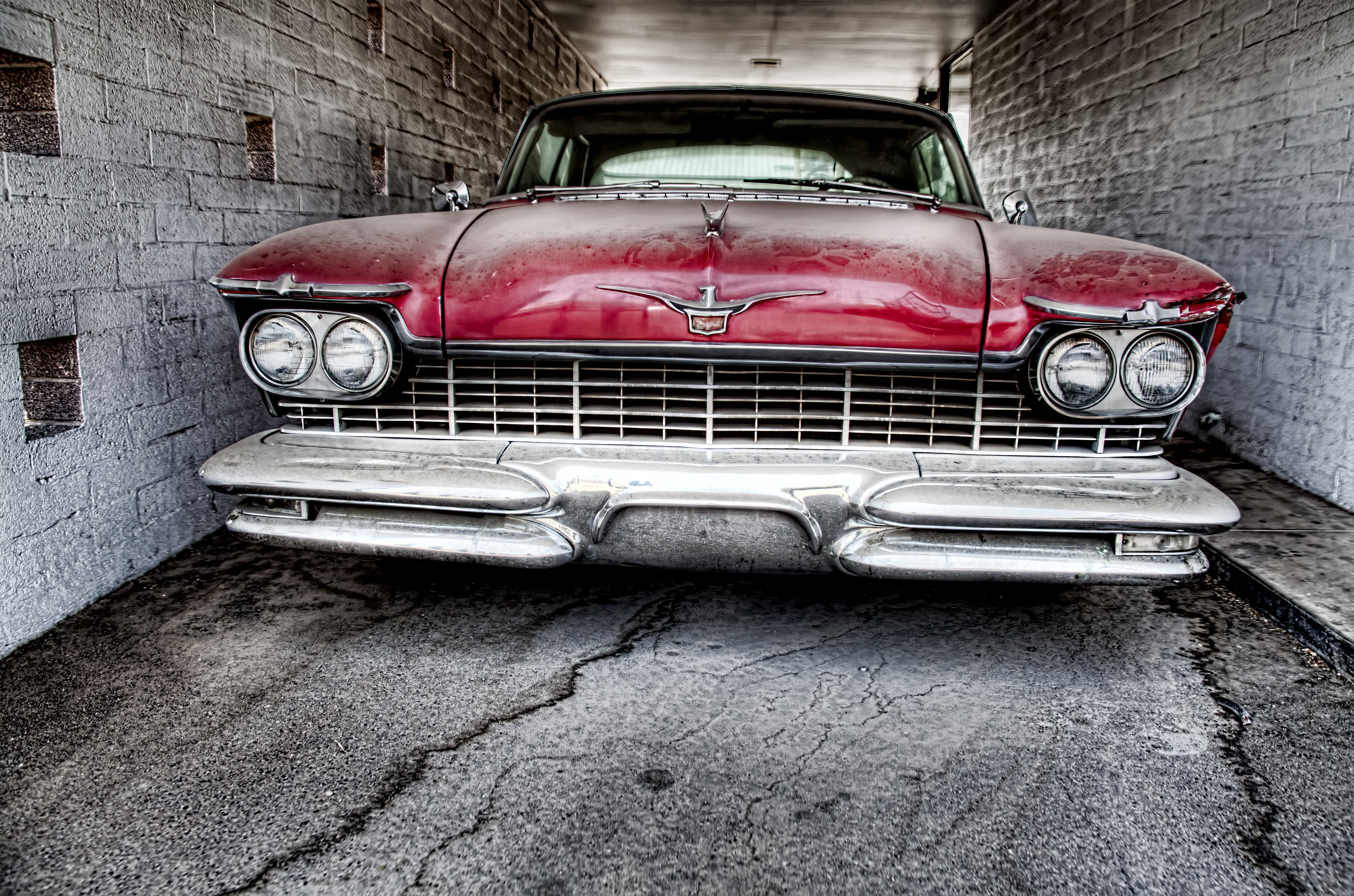 Old Red Car j Published August 2, 2014 at 5500 × 3641 in St. Francis and a Hippie Bus 1957 Chrysler Imperial